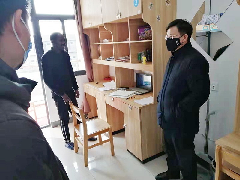 蒋军成看望慰问了坚守一线的工作人员,对学生宿舍、餐厅等重点区域进行了检查,深入了解了疫情防控措施落实情况,详细询问了疫情防控工作中遇到的问题和困难。他要求校区要全面实行校园封闭式管理,严把校区入口关,落细询问、检查、测温等关键环节,对校内道路、楼宇和各类基础设施进行实时动态巡查,实现全天候无盲区监控,务必做好校园卫生消毒工作和疫情防控物资储备,抓紧抓实师生服务保障,筑牢筑强师生安全防线。(王彩芳/综合 安保科/摄)