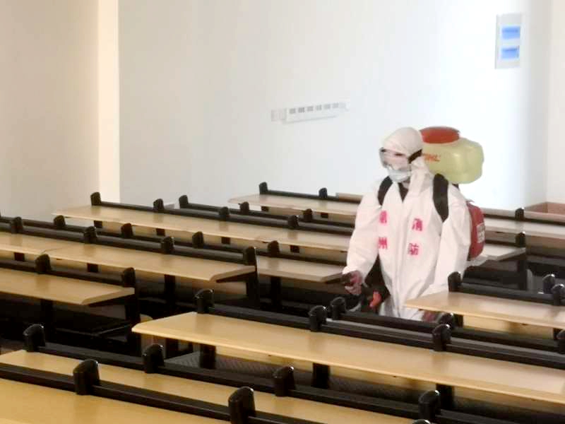 常州市消防救援支队在校区工作人员的带领下深入教学楼、餐厅、体育馆、学生宿舍、东门卫等楼宇公共区域及外围公共区域进行有序、全面消杀。在作业现场,工作人员携带专业消杀设备,分组开展消杀工作,不留死角。校区管委会将进一步落实各项防控要求,完善各类防控应急方案预案,防护演练到位,规范执行到位。做到守土有责、守土有方、精准施策,做实各项开学保障工作,确保师生们在春暖花开的季节安全愉悦地回校学习生活。