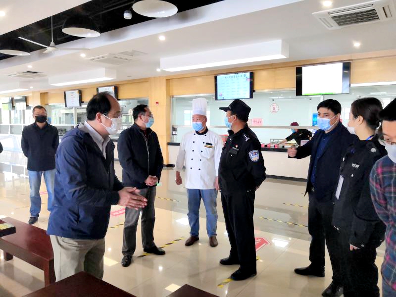 随后检查组检查了快递中心,要求快递点一定要加强人员管理,做好投递点的卫生消杀、消防安全工作,给师生提供安全、满意的服务。最后检查组对第一餐厅的消毒杀菌、分餐分桌、人员体温测量等工作落实情况进行了详细检查,要求餐厅做好现场就餐人员的管理,避免人员聚集,同时更要抓好食品卫生安全关,严格蔬菜农药检测、食品留样等制度,并按照相关操作规范进行食品生产加工,保障广大师生饮食安全。