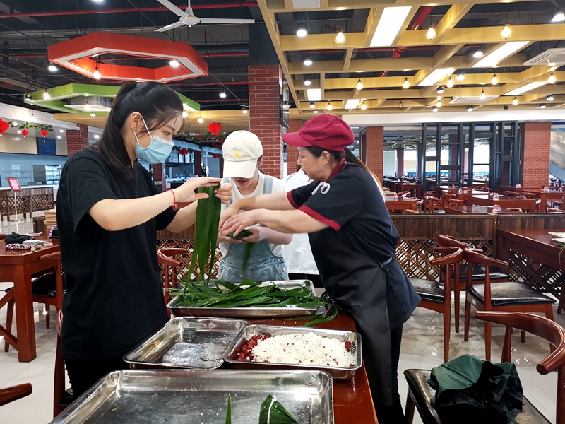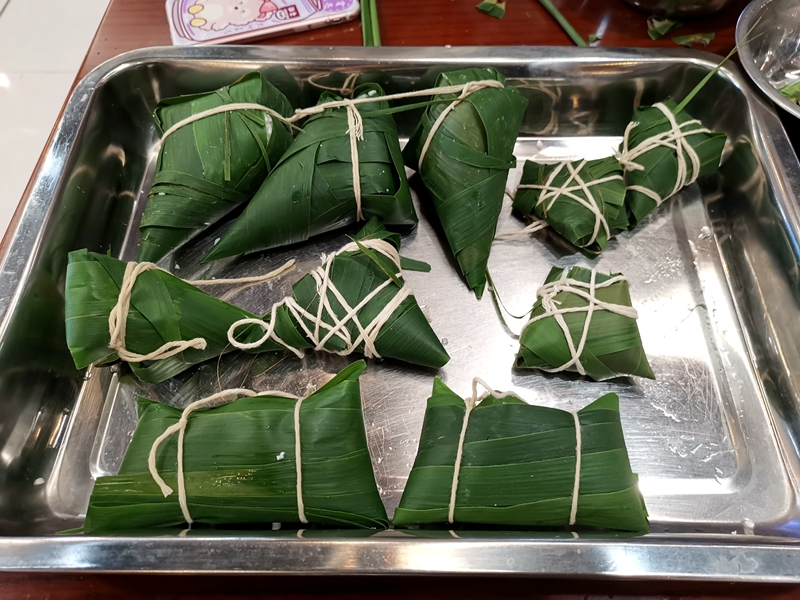 “绿杨带雨垂垂重,五色新丝缠角粽。”包粽子是个技术活,虽然包粽子的技术都略显生疏,但是在餐厅师傅的指导下,参与活动的热情让大家迫不及待开始一展身手。包的粽子各型各样,有三角四角的,还有长方形的,大家相互学习相互指导,欢声笑语不断,收获了满满的愉悦心情和劳动果实。活动结束后,校区管委会还向校园大使们颁发了考核合格荣誉证书。校区管委会负责人表示,在一年的大使志愿服务活动中,同学们的身影活跃在校区的各个角落,校园大使以介绍校区概况为服务内容,展现了校区的建设历程和发展,也展现了当代大学生的青春活力和风采,希望校园大使今后在人生的各个舞台上能够勇于展现自我,绽放青春光彩。