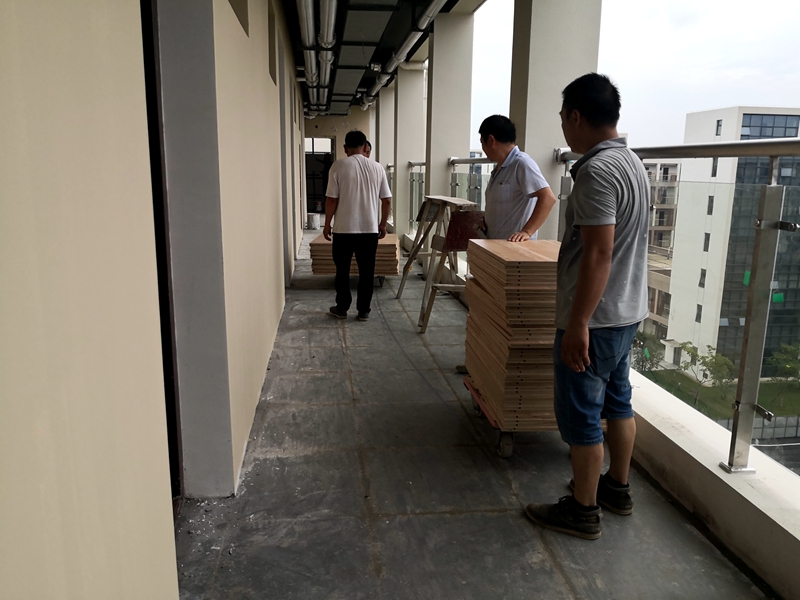 西太湖校区管委会后勤科工作人员一早守候在现场,严格对照技术参数要求现场抽样送样货品,中标厂家有条不紊地进行卸货搬运、安装施工。为了配合家具生产厂家的进场施工,基建处、西太湖校区管委会、后勤集团联合校区建设工程项目管理公司、施工总承包单位、市政单位、家具单位等相关负责人员多次开会协调,克服道路施工等不足条件,创设有利交叉施工时间,提出了施工保障要求,同时结合现场多次踏勘,进一步明确了需要配合的具体事项。此外,为确保家具搬运安全高效,校区管委会后勤科协调采用电动云梯进行项目推进,大大加快了工作推进节奏。