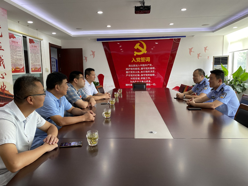 在经发区交警中队,校区负责人与交警中队中队长程秋梁、指导员匡志刚就校区新学期开学、新生报到等重大活动的道路交通方案、师生交通安全宣传等方面进行了商讨,并就新学期交通安全宣传进校园达成了共识。