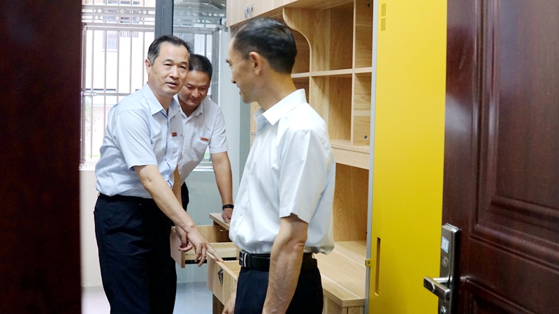 校领导深入走访了此次新竣工验收后投入启用的第二餐厅、学生公寓、立行楼、立言楼等地,对西太湖校区焕然一新的校园环境和装备设施表示充分肯定,对校园文化建设提出建议,并提出着力营造校园“坚决制止餐饮浪费行为”的良好氛围。在立言楼会议室,校领导认真听取了基建处、西太湖校区管委会和后勤服务中心负责人的近期工作汇报。邱正祥对各部门不畏酷暑、攻坚克难抓进度、确保质量抢工期的工作精神表示了充分肯定,并要求在后续工作中始终严守廉洁自律底线,继续发扬艰苦奋斗精神。徐树法对新学期工作作了部署安排,希望大家继续从思想上增强责任意识和服务意识,做好疫情防控常态化和安全、后勤保障的同时,密切配合,落细落实各项工作,以更加饱满的热情投入到新学期的工作中。
