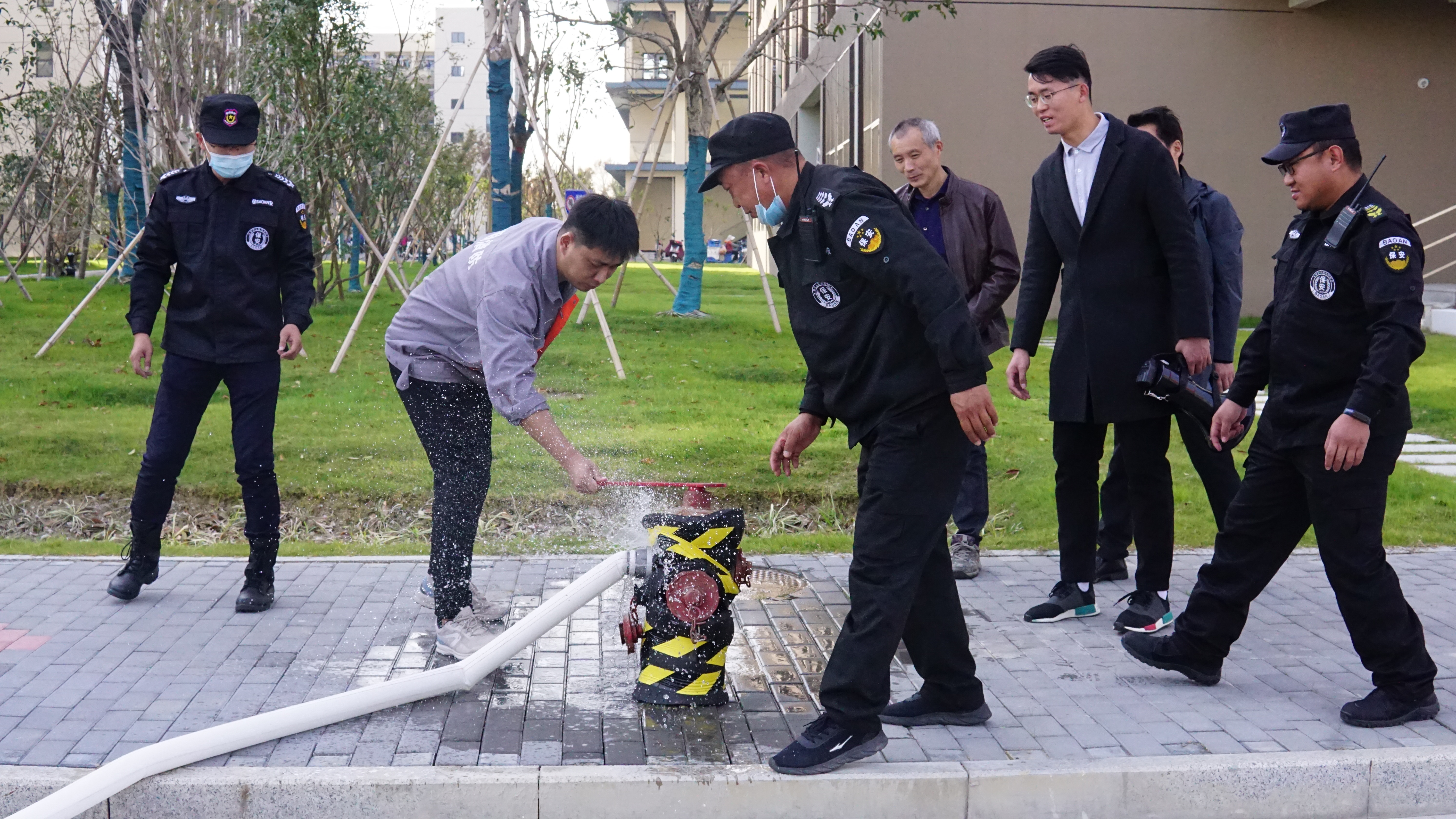 随后,消防维保单位工作人员向大家讲授了如何正确使用灭火器、灭火毯和水带连接等技能,并进行了模拟演练。演习开始后,参加人员分组依次进行了油盆灭火器灭火、灭火毯灭火、水带连接三个项目,整个演练过程组织严密、安全有序。