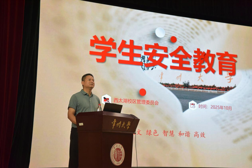 为切实筑牢校区安全防线,全面提升新生的安全防范意识与应急处置能力,10月16日,西太湖校区面向石油与天然气工程学院、能源学院2025级新生组织举办了安全教育专题讲座。校区管委会副主任李长荣受邀担任主讲,学院新生及辅导员共同参加。