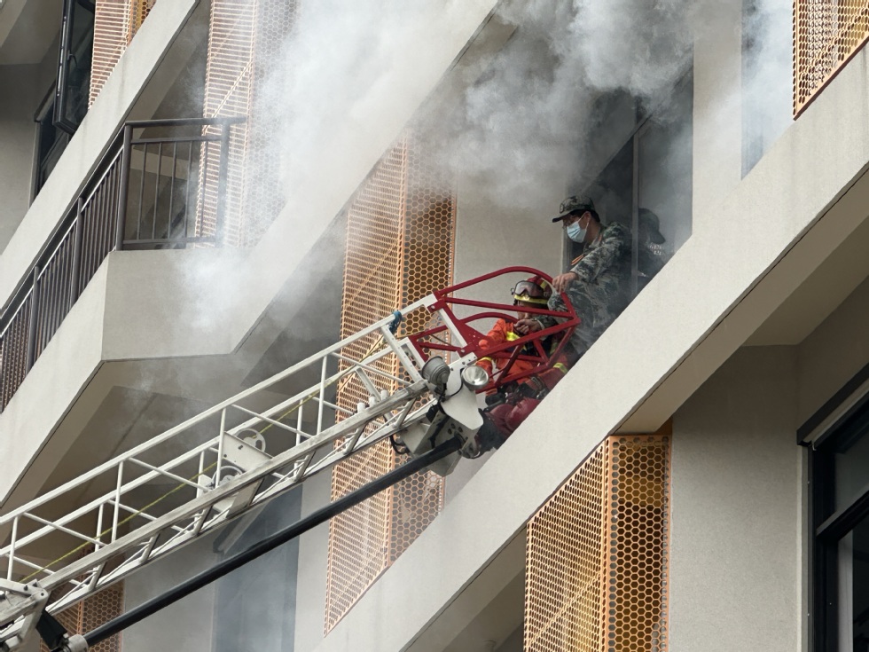 在实战演练中,依次开展了应急疏散、高空救援及初期火灾扑救等科目。博雅居12号楼警报响起后,参演师生按照预定路线迅速撤离至安全区域,消防救援人员利用专业设备对被困人员实施营救,并同步开展高空喷射灭火、强攻近战控火等战术演习。