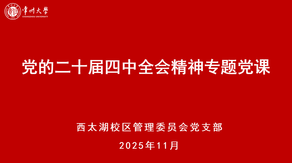 为深入学习贯彻党的二十届四中全会精神,切实把党员的思想和行动统一到党中央决策部署上来,11月10日,西太湖校区管理委员会党支部开展二十届四中全会精神学习专题党课。